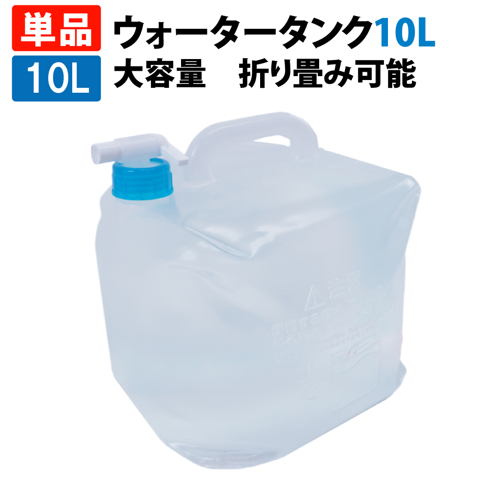 たっぷり10Lの給水袋。コンパクトにたためる給水タンク。防災やレジャーに最適です。注ぐのに便利なコック付き! ウォータータンク 10L