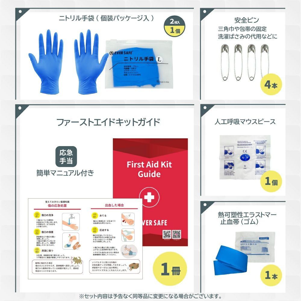 他の画像を見る 災害時やアウトドア、スポーツなどでの予期せぬケガに。ガイドブック付きで緊急時も安心。 ファーストエイドキット Mサイズ 救急セット 救急箱 防災グッズ 防災士監修 応急処置 キャンプ アウトドア 登山 車載 EVERSAFE FANYM01 メール便1個まで 公式サイト特別価格 ¥ 1,796 税込 詳細を見る お気に入りに登録する