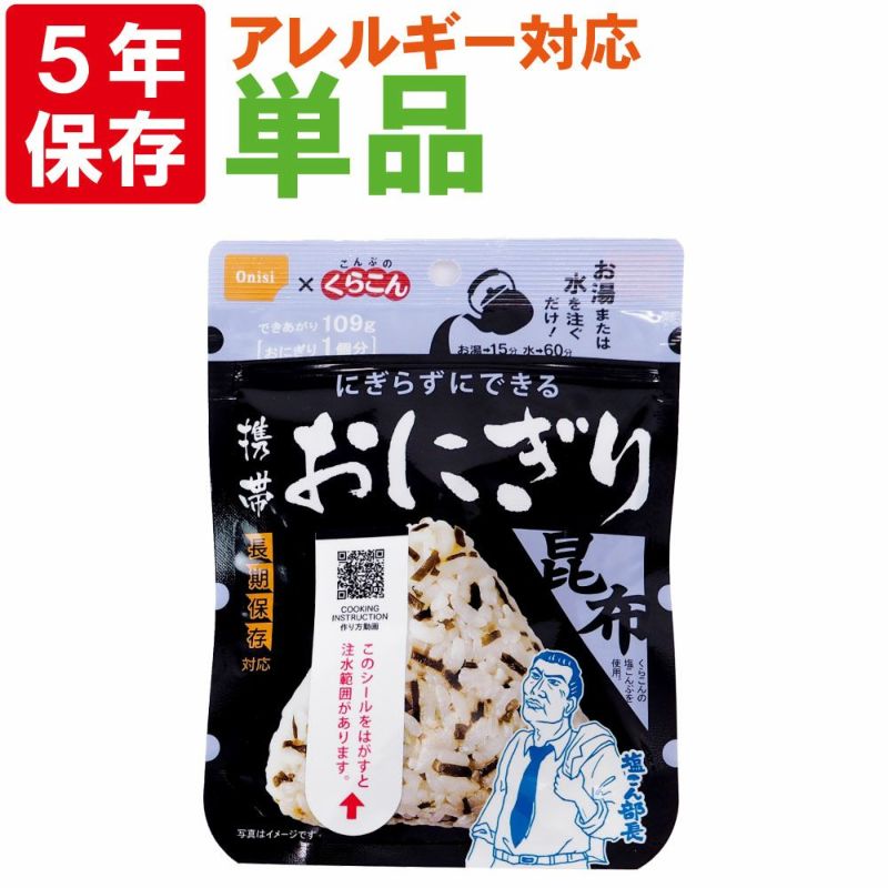 6. 【メール便OK(8個まで)】アレルギー対応食 尾西の携帯おにぎり 昆布 5年保存食