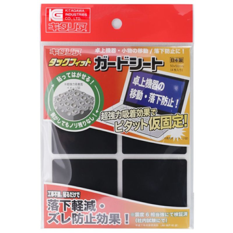 3. 防災 【メール便OK(20個まで)】耐震マット タックフィットガードシート TF-GS50BK 4枚入 50x50mm