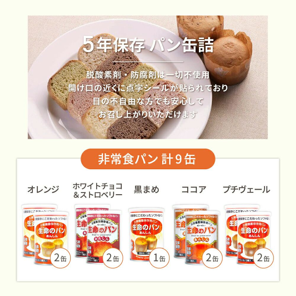 他の画像を見る 【12缶セット】EggFreeプレーン、オレンジ、メロン、黒糖 非常食新食缶ベーカリー「12缶セット(4種類x3缶)」5年保存食災害備蓄用缶詰パン 公式サイト特別価格 ¥ 6,156 税込 詳細を見る お気に入りに登録する