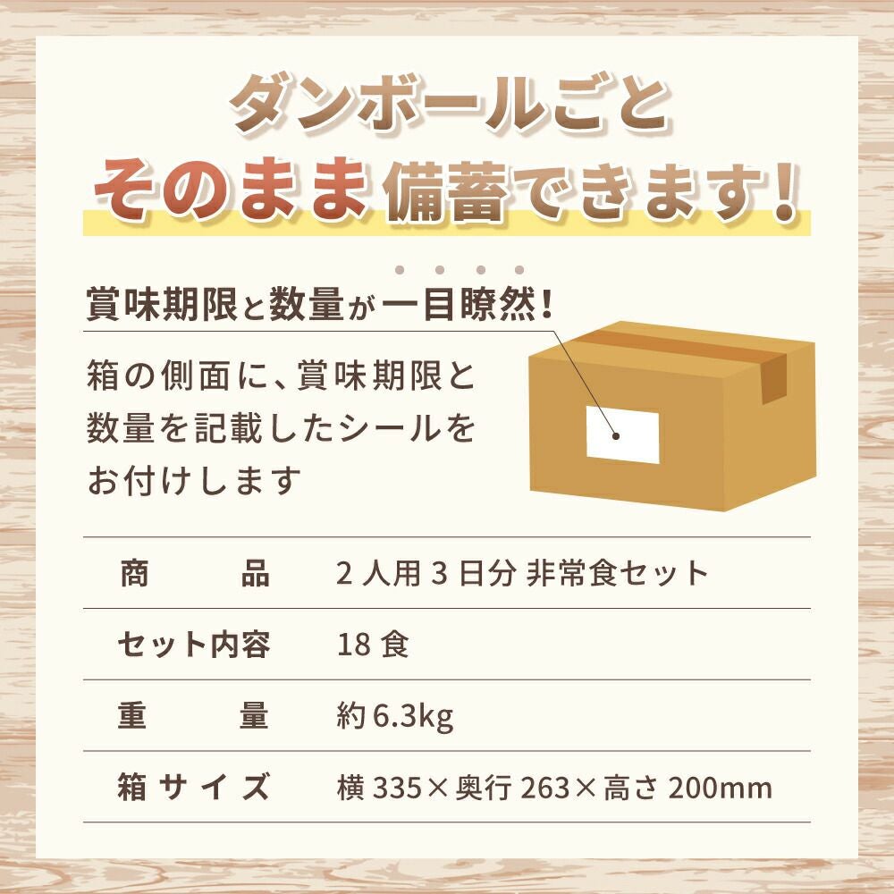 他の画像を見る 家族2人分の非常食3日間分と保存水!箱入りで団体様用備蓄にも便利。防災専門店の長期保存食セット 2人用/3日分(18食)【10年保存水付】 公式サイト特別価格 ¥ 7,580 税込 詳細を見る お気に入りに登録する
