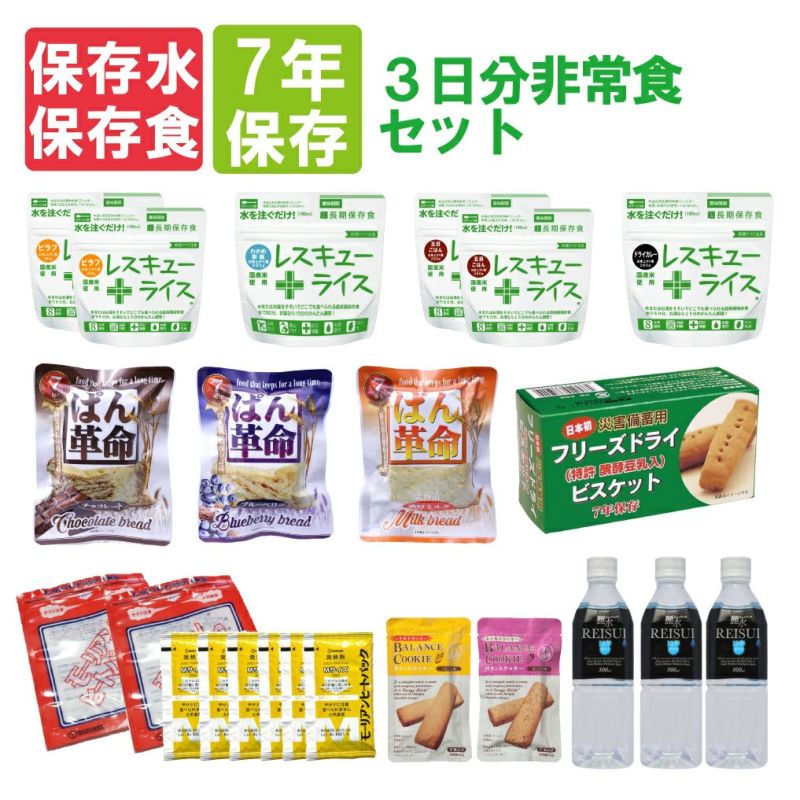 災害から支援物資が届くまでの最低3日分~7日分の水と食料を備えて置くことが推奨されています。