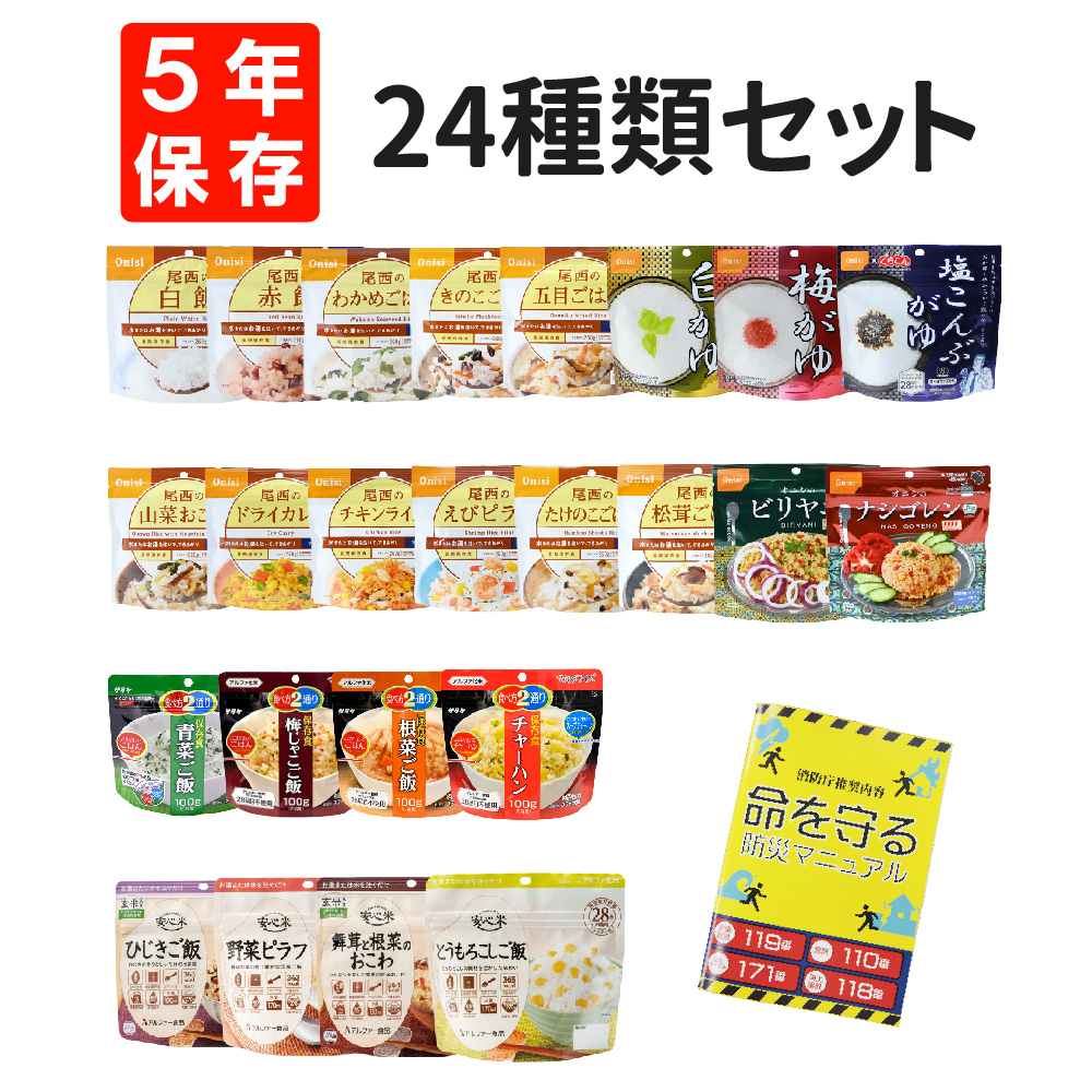 主要3メーカーのアルファ米24種類オリジナル防災マニュアル付