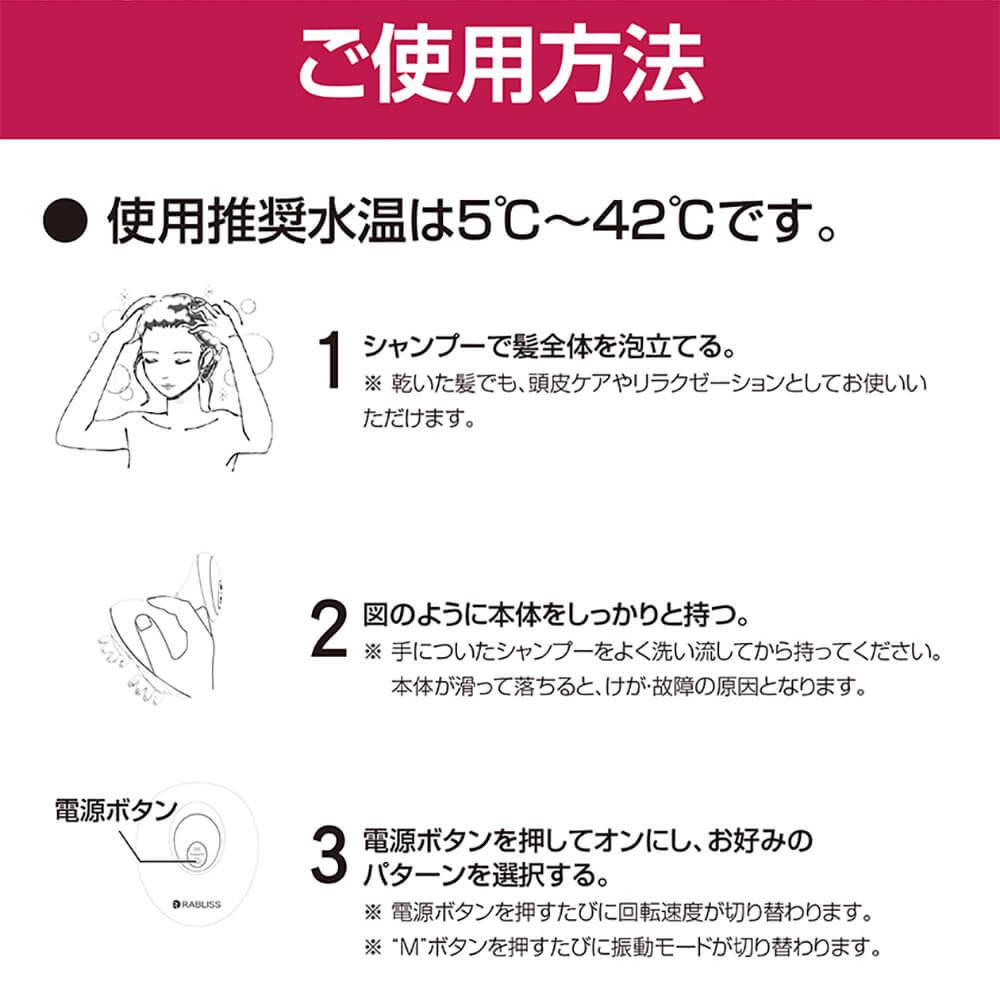 乾いた髪でも頭皮ケアやリラクゼーションとしてお使い頂けます。
