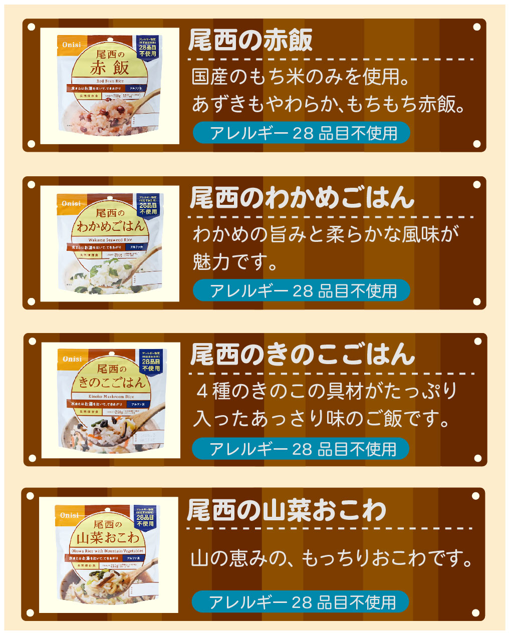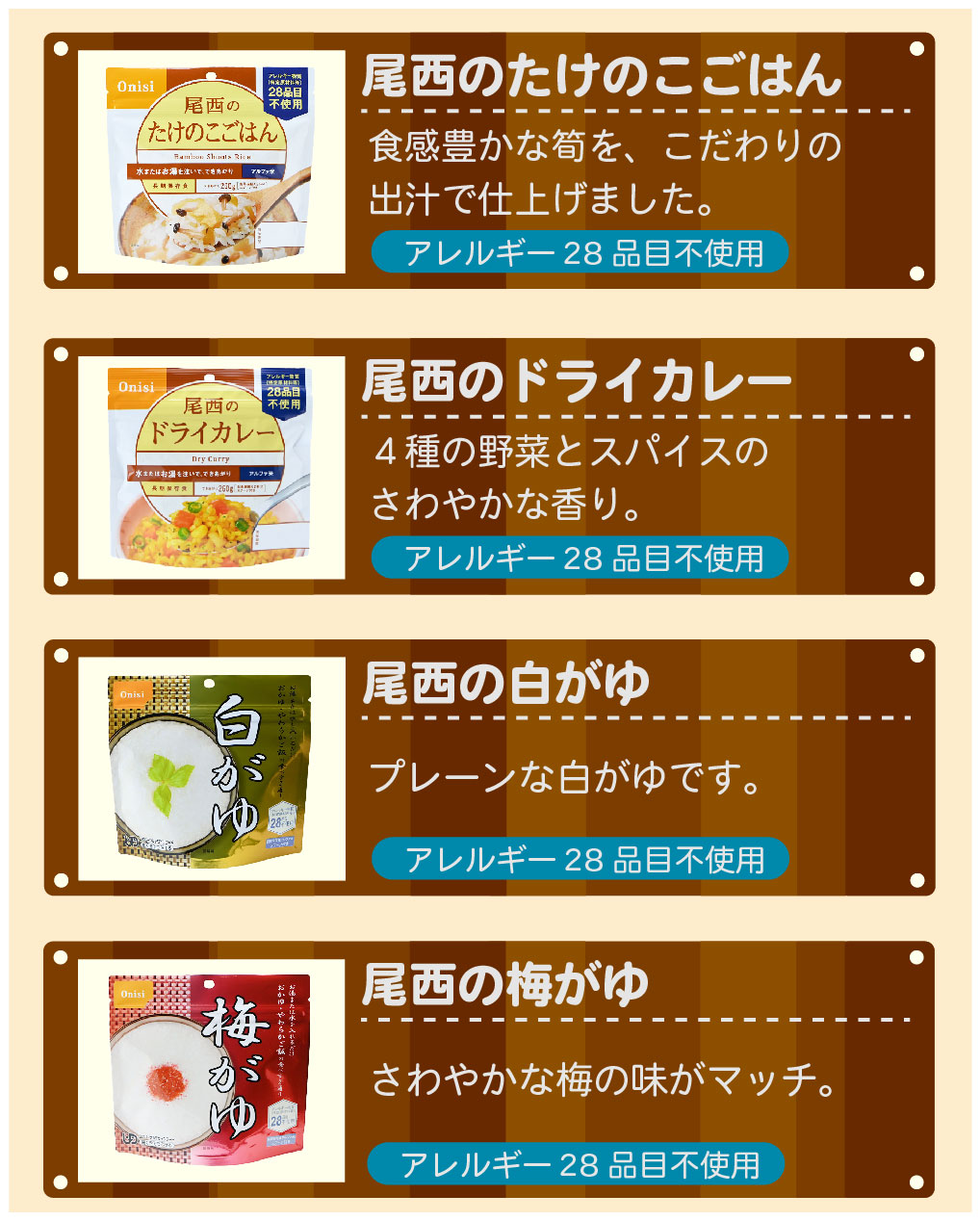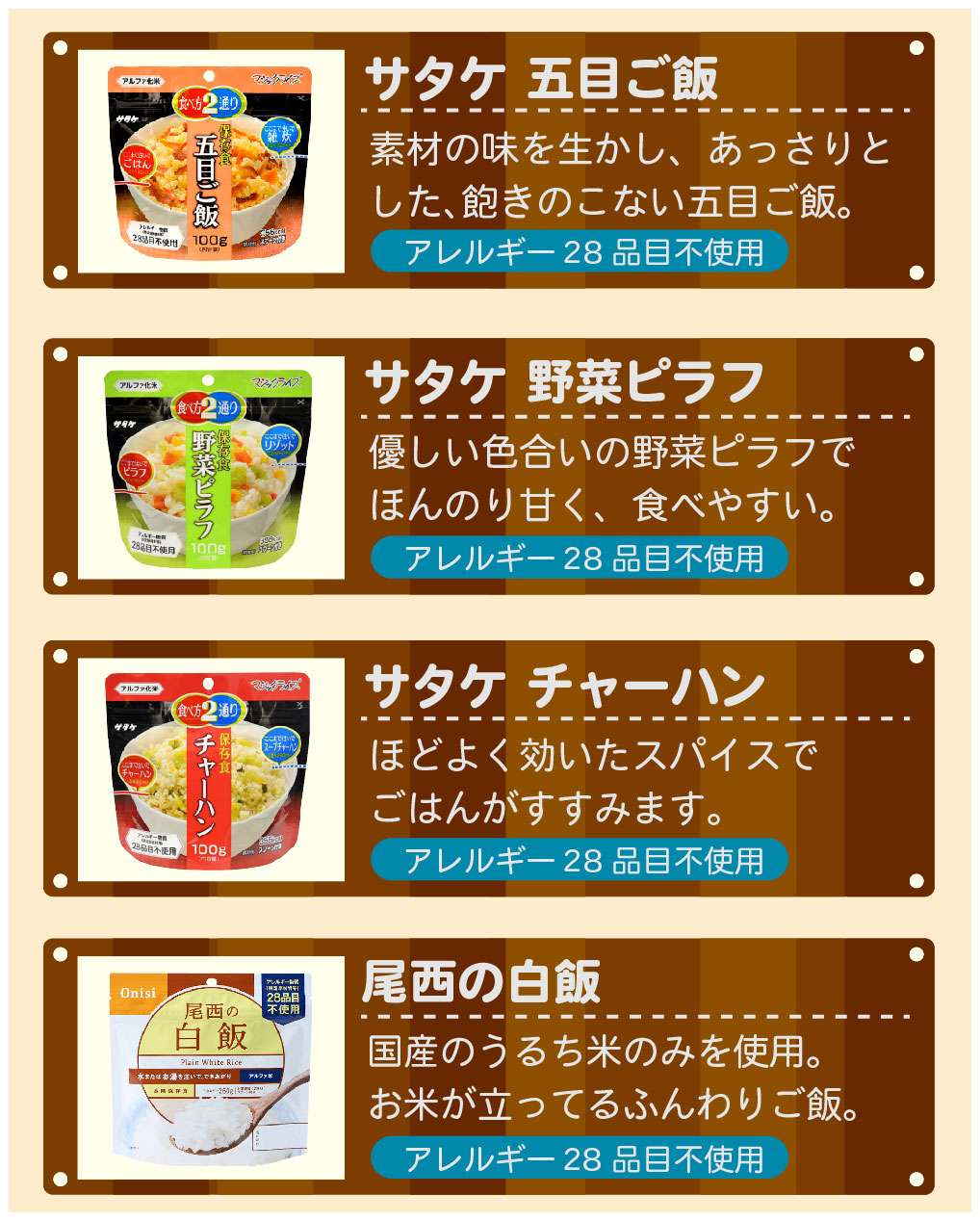 アレルギー対策の非常食、子供用にも