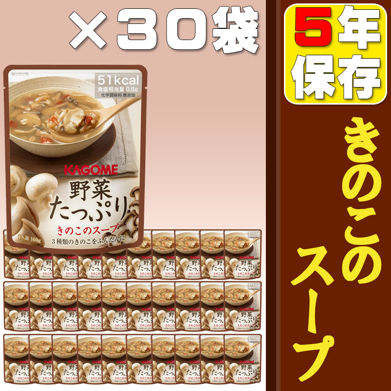 化学調味料無添加!KAGOMEの常温でもおいしいレトルトパウチ非常食 備蓄食品カゴメ野菜たっぷりスープx30袋セット「きのこのスープ」