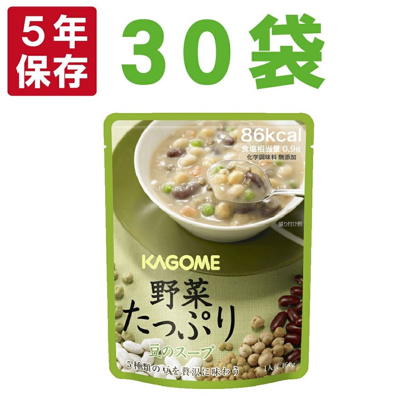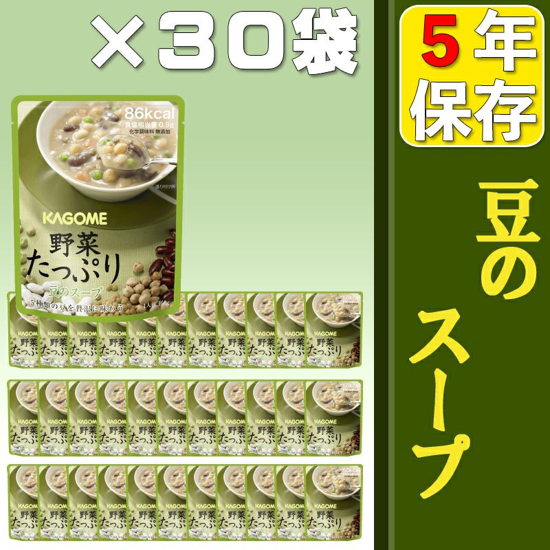 化学調味料無添加!KAGOMEの常温でもおいしいレトルトパウチ非常食 備蓄食品カゴメ野菜たっぷりスープx30袋セット「豆のスープ」