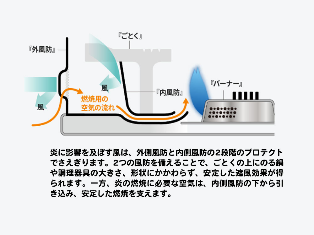 ●空気は通しても、風は通さない「ダブル風防ユニット」搭載