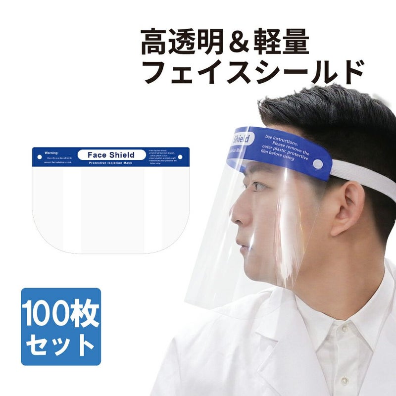 【100枚セット】高透過 超軽量 曇り止め 飛沫感染防止 フェイスシールド 100枚セット 飛沫防止 軽量 洗える メガネ併用可能