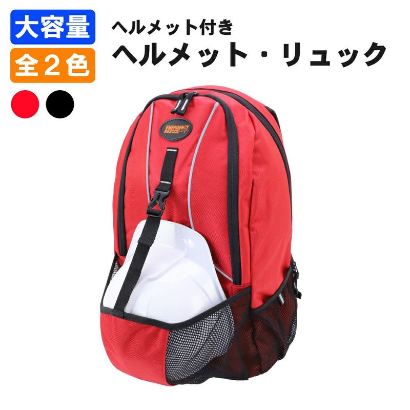 国家検定品の防災用ヘルメット付!外部ポケットにヘルメット収納可能!コンパス&ホイッスル付たっぷり収納多機能リュック! 防災グッズ リュック&防災用ヘルメット (防災ヘルメット付き)