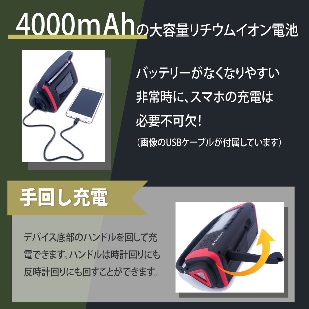 種類によっては手回し充電や電池で聞くことが出来る。