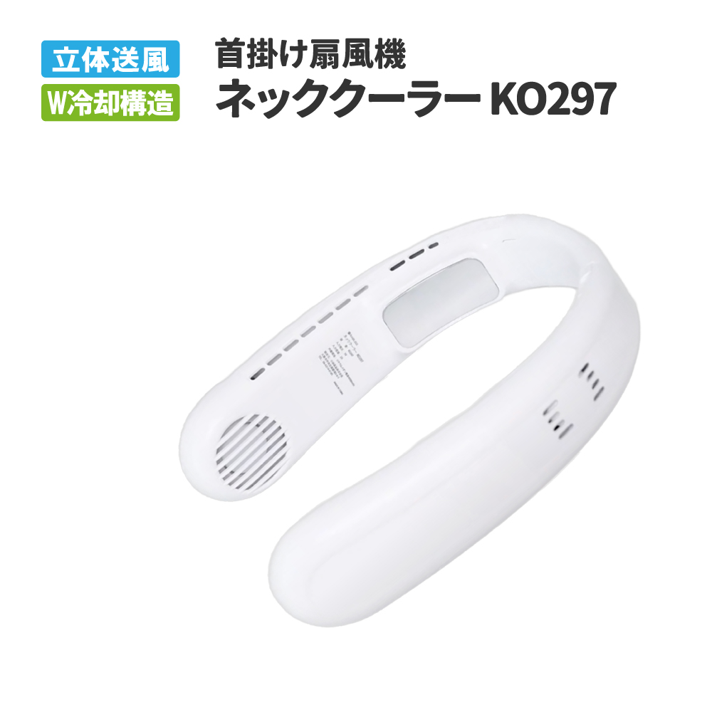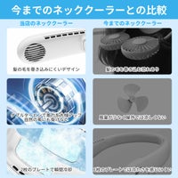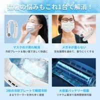 新感覚!首にかけるクーラー! 猛暑の悩みもこれ一台で解決! 立体送風+2つの冷却プレートのW冷却構造 1秒で瞬間冷却! 首の両サイドから効果的に冷やす! 体を冷やすのに一番最適と言われている首の太い血管を冷やすことでほてった体を効率的クールダウン! 首から伝わる強力冷感で暑さを和らげます。 体感冷却最大-16℃の衝撃! わずか2秒ですぐ冷えるペルチェ冷却システムを採用。氷や冷却ジェルとは違い、炎天下でも冷たさが続きます。 商品特徴 ●冷蔵庫にも使われる「ペルチェ素子冷却プレート」採用 体感温度をマイナス16℃に冷却! ●マスクの汗蒸れ解消 冷却プレート&強い風で涼しく快適に ●メガネが曇らない 空気循環を速めて、曇りにくくする ●2枚の冷却プレートで瞬間冷却 まるでクーラーを持ち歩く感覚 ●大容量バッテリー搭載 リチウム電池で長時間使用可能 ●ノイズが気にならない静音設計 運転音は33~39dBと静音設計
