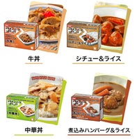 【賞味期限について】 牛丼/シチュー&ライス/中華丼/煮込みハンバーグ&ライス 賞味期限:製造より3年保存(賞味期限2年半以上の商品をお届けします) カレーライス 賞味期限:製造より5年保存(賞味期限4年半以上の商品をお届けします)
