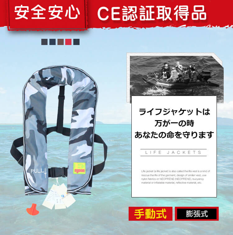 CE認証・ISO認証安全規格取得品!ライフジャケット ベストタイプ 手動膨張式!