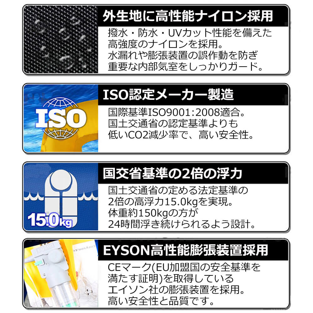 ●浮力:150N(国交省規定値の2倍)