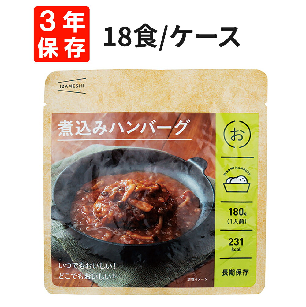 3. IZAMESHI(イザメシ) 煮込みハンバーグ 18食セット/箱 防災食 3年保存【お取り寄せ商品】