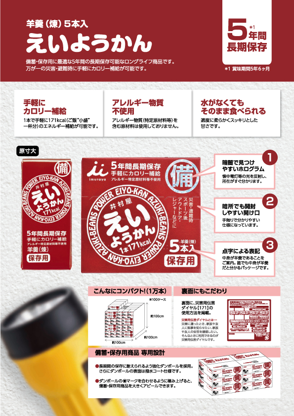 長年の井村屋ようかん製造技術を生かして5年6か月の長期保存を実現しました。