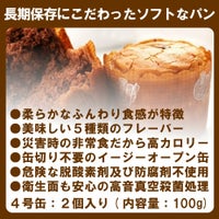 普段食べているようなやわらかいパンをそのまま缶詰にしました。カンパンより食べやすく、ふんわりとした食感が特徴です。パンの缶詰はいつでも柔らかく、しっとりとした味わいです。喉が渇かないように甘みを抑えてあり、脱酵素剤や防腐剤なども使っていません。