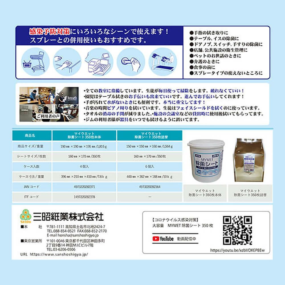 他の画像を見る 物品の消毒に有効な塩化ベンザルコニウムを0.05%配合! 除菌シート 大容量350枚 MYWET アルコールタイプ 4個セット ケース販売 塩化ベンザルコニウム0.05%配合 日本製 公式サイト特別価格 ¥ 7,315 税込 在庫切れ 詳細を見る お気に入りに登録する
