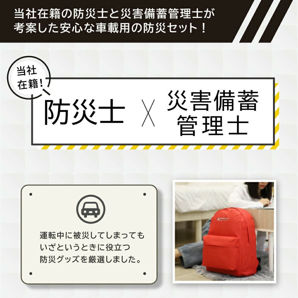 他の画像を見る 運転中の災害や長時間の立ち往生といった緊急時に、車に積んでおくと安心できるアイテムを防災士が厳選しました 防災セット 車載用防災セットDX リュックタイプ 防災グッズ 非常用持ち出し袋 運転中 車 渋滞 避難 長期保存 地震 災害 ハンマー 車中泊 帰宅困難者 防災士監修 災害対策 防災用品 携帯トイレ EVERSAFE CARDXEM 公式サイト特別価格 ¥ 7,106 税込 詳細を見る お気に入りに登録する