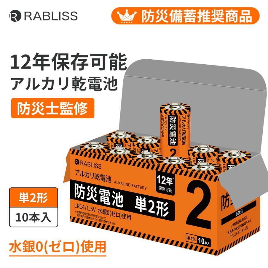 他の画像を見る 防災備蓄推奨商品 12年保存可能 水銀0(ゼロ) 停電 緊急時の強い味方 アルカリ乾電池 防災電池 単2形 50本 (10本入×5箱) 単2電池 電池 12年保存 台風対策 地震対策 充電 懐中電灯 ラジオ ライト ランタン 防災グッズ KO408 RABLISS 公式サイト特別価格 ¥ 8,882 税込 詳細を見る お気に入りに登録する