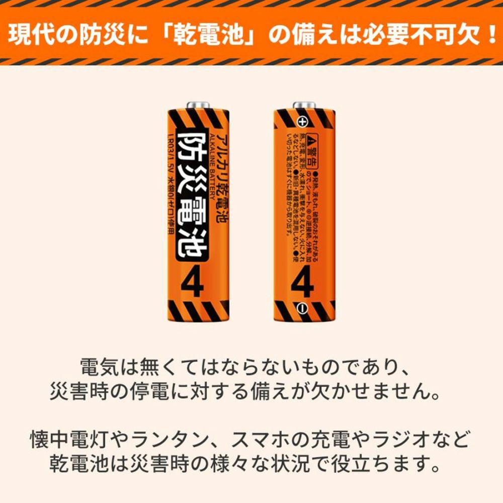 他の画像を見る 停電、緊急時の強い味方 長期保存可能な防災用乾電池 アルカリ乾電池 防災電池 単4形 20本入 10個 12年保存 乾電池 単4電池 防災士監修 長期保存 防災グッズ KO390 公式サイト特別価格 ¥ 7,001 税込 詳細を見る お気に入りに登録する