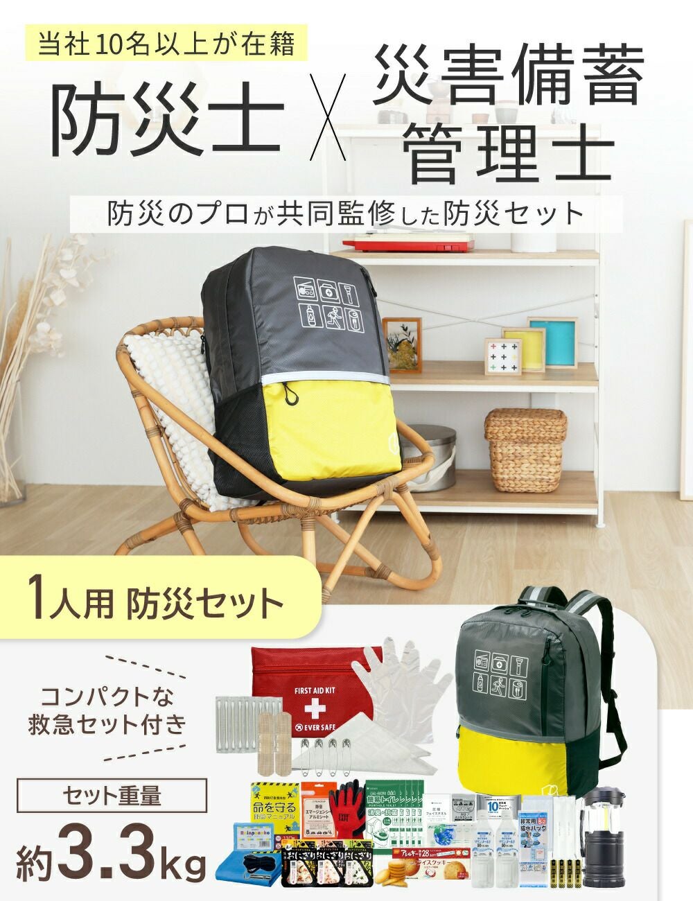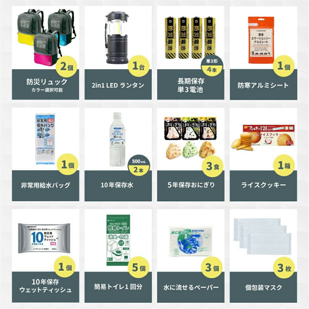 他の画像を見る 大容量でたっぷり収納!軽量で持ち運び楽々の防災リュック 充実の防災セット 防災士監修 防災セット 1人用 47L ビッグリュック 防災グッズ 大容量 非常食 お菓子 保存水 ランタン 非常用トイレ 救急セット 懐中電灯 衛生用品 地震対策 警戒レベル3 PEACEUP L3BR01 公式サイト特別価格 ¥ 9,405 税込 詳細を見る お気に入りに登録する