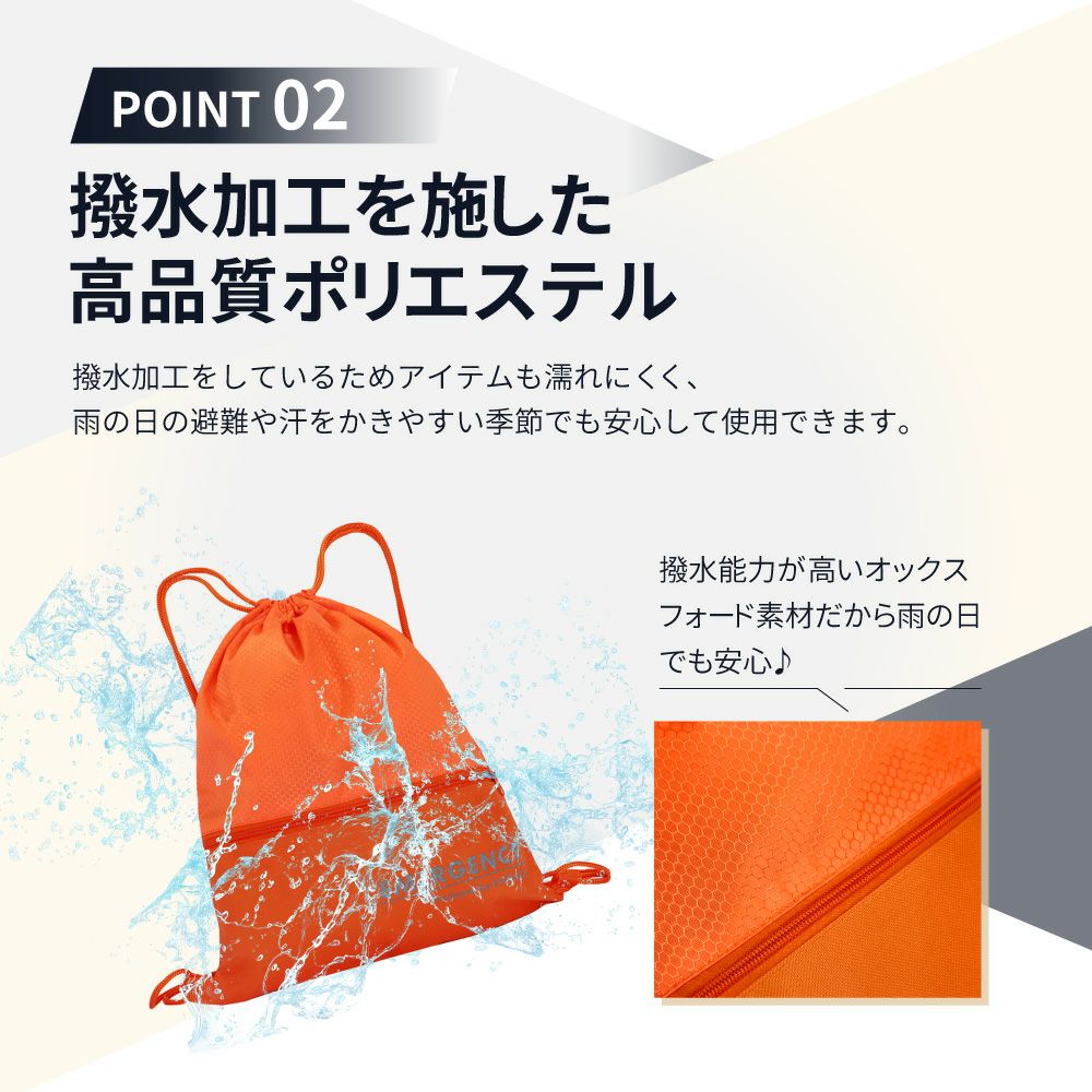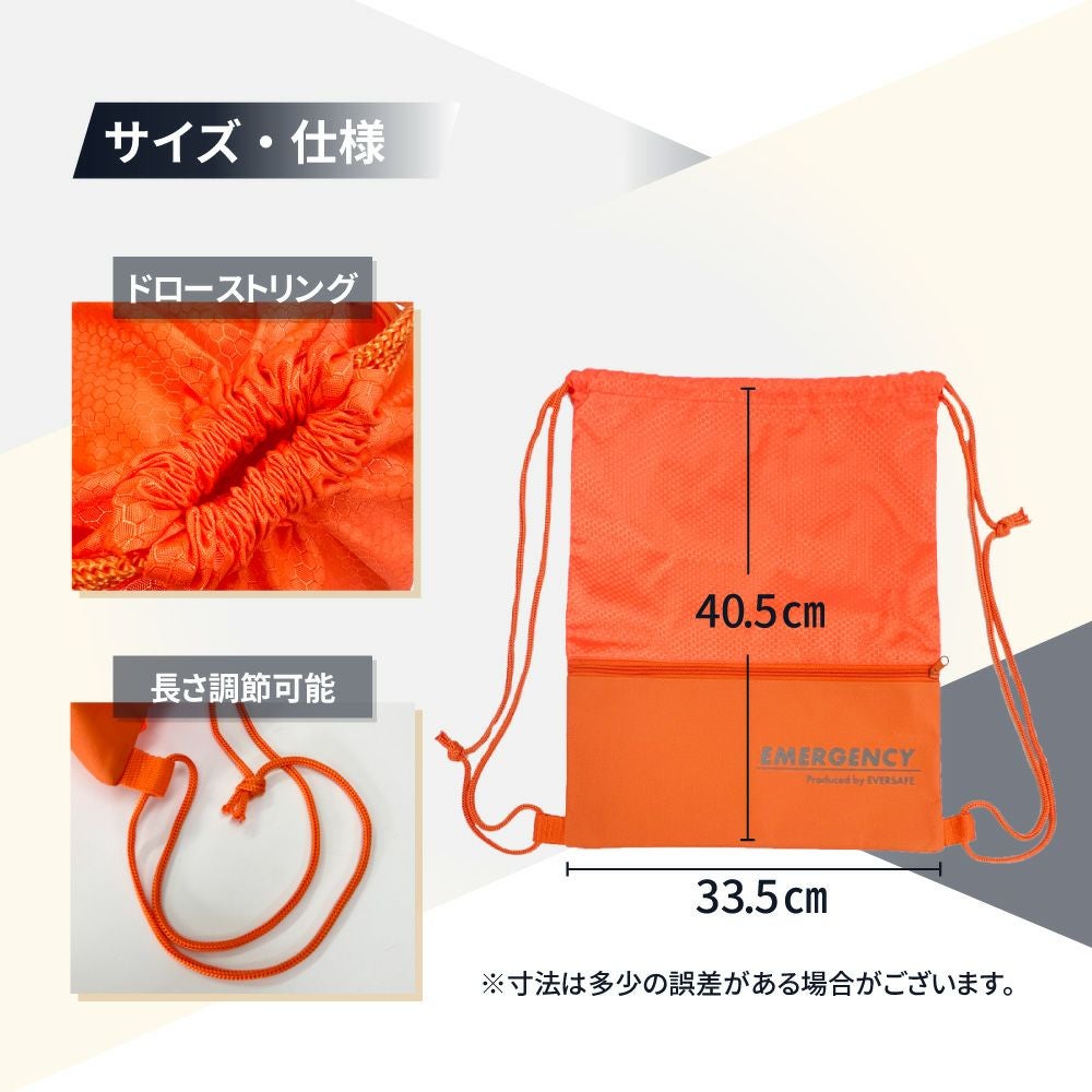 他の画像を見る 日常も防災もコレ1つ 軽量 撥水加工 長さ調節可能 防災バッグ ナップサック 10個 リュックサック 非常時 避難 軽量 撥水加工 巾着 KS01 EVERSAFE 公式サイト特別価格 ¥ 5,509 税込 詳細を見る お気に入りに登録する