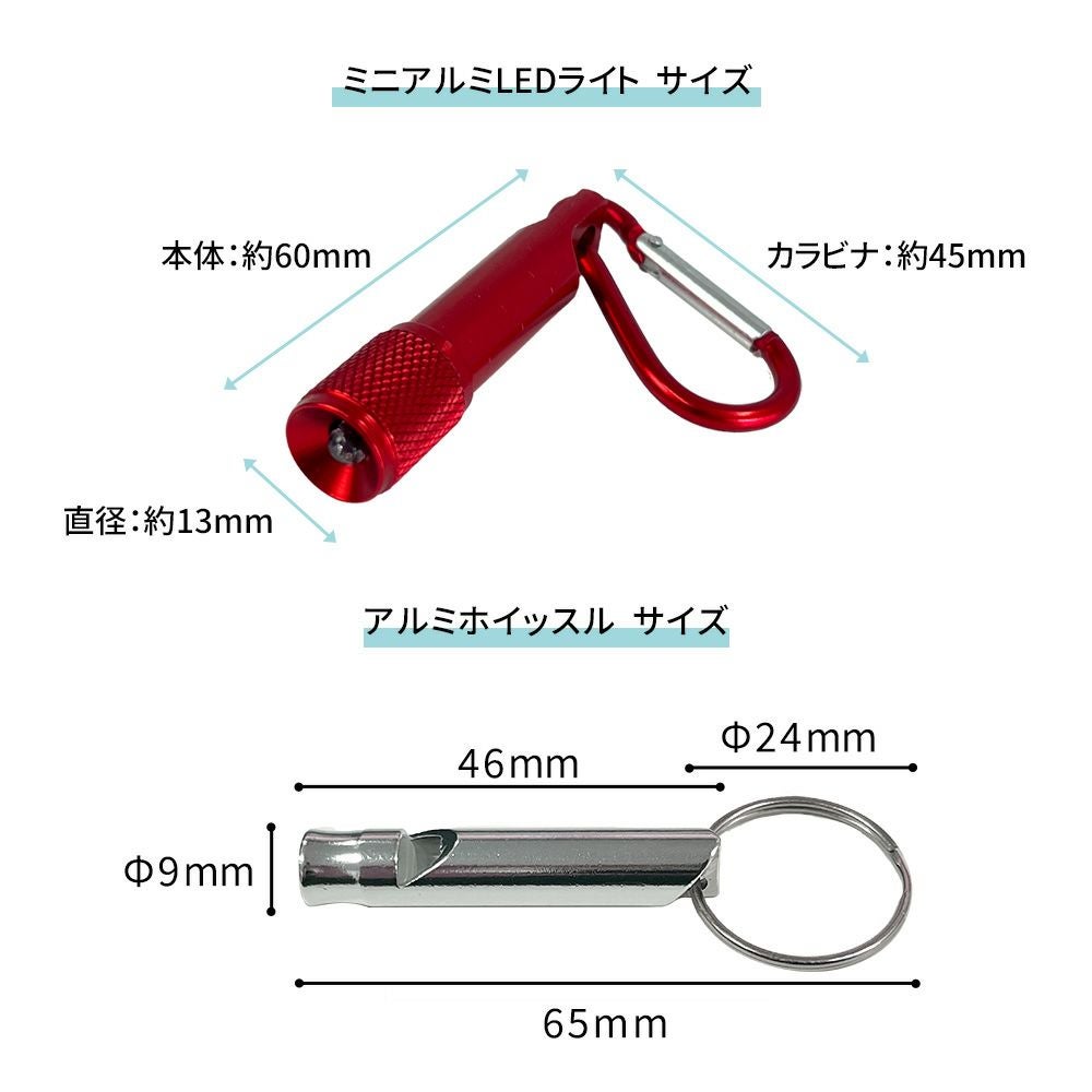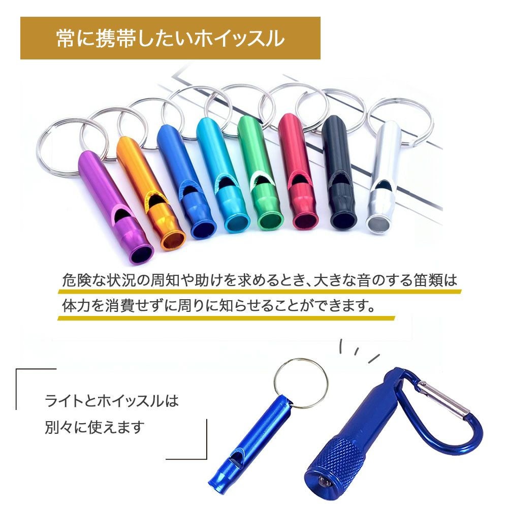 他の画像を見る コンパクトLEDライト+アルミホイッスルの便利なセット 災害や緊急時のいざという時に!アウトドアに! ミニライト カラビナ付 ミニアルミLEDライト&ホイッスル 50個 笛 LED 緊急避難 救助信号 災害 防災グッズ 小型軽量 防災セット EVERSAFE 公式サイト特別価格 ¥ 8,360 税込 詳細を見る お気に入りに登録する