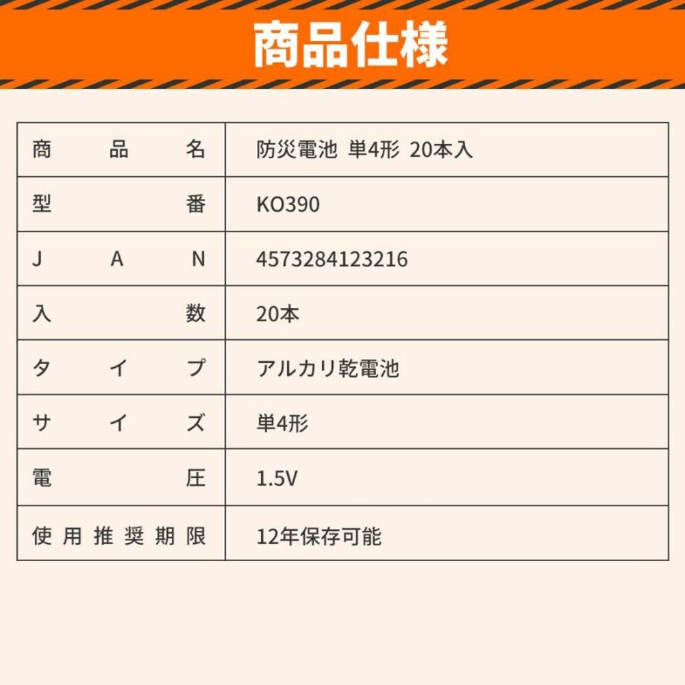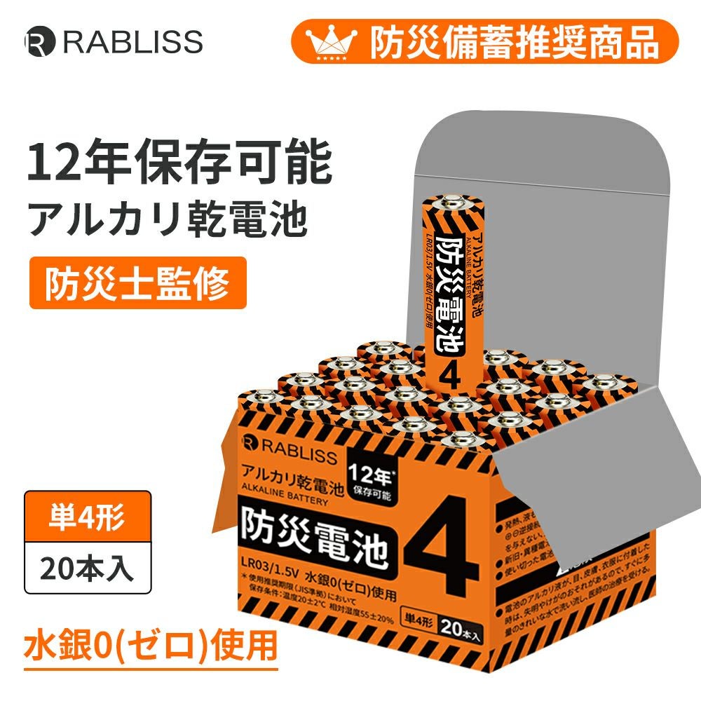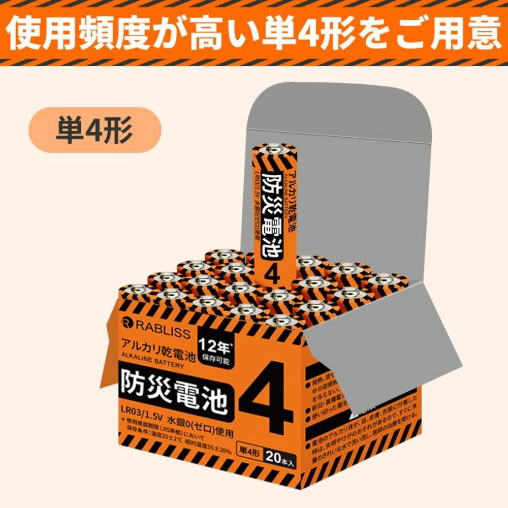 他の画像を見る 停電、緊急時の強い味方 長期保存可能な防災用乾電池 アルカリ乾電池 防災電池 単4形 20本入 10個 12年保存 乾電池 単4電池 防災士監修 長期保存 防災グッズ KO390 公式サイト特別価格 ¥ 7,001 税込 詳細を見る お気に入りに登録する