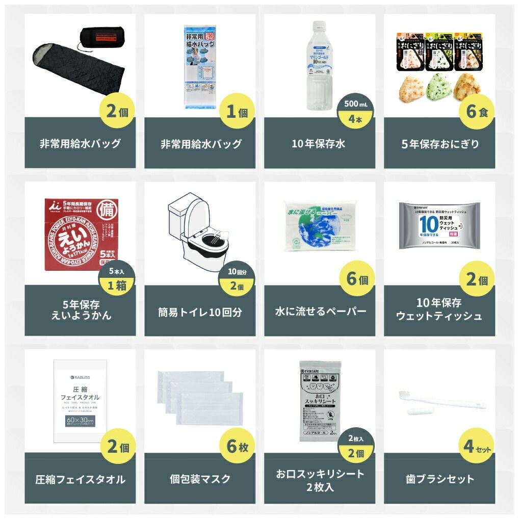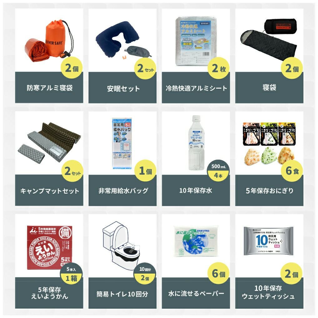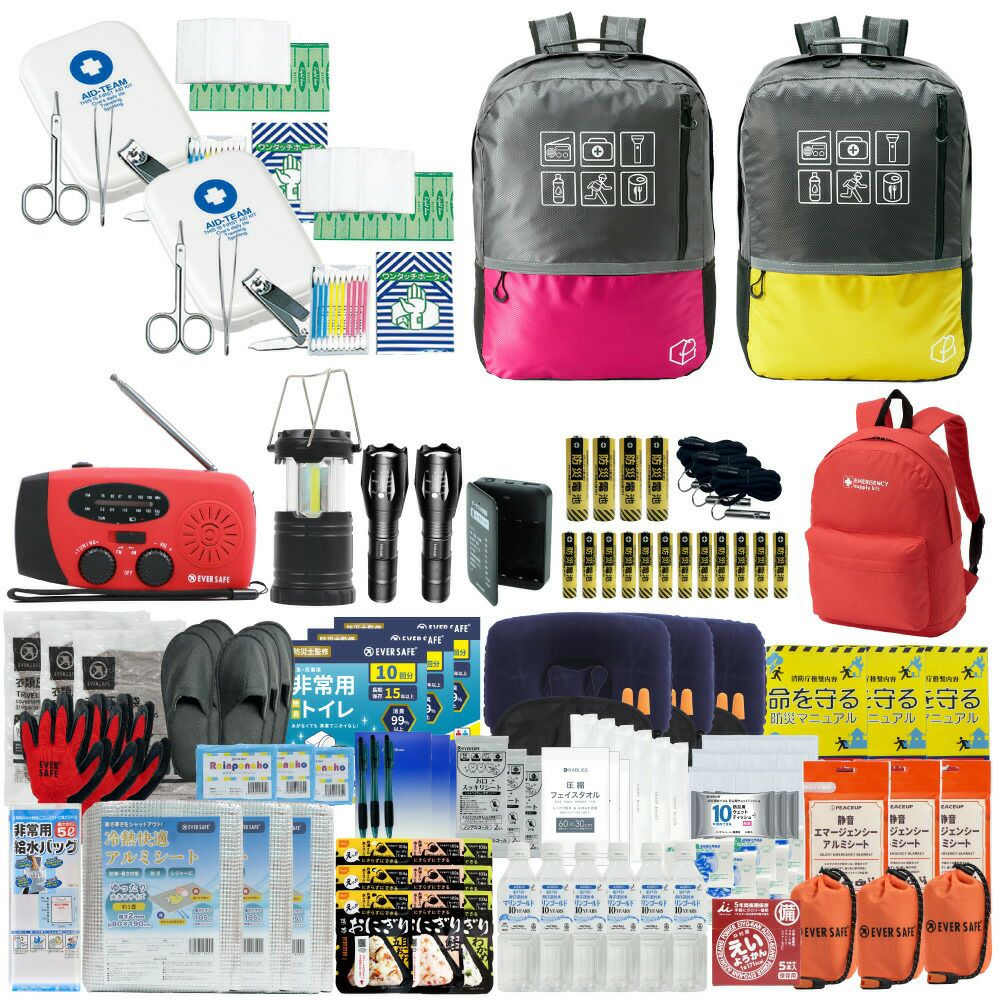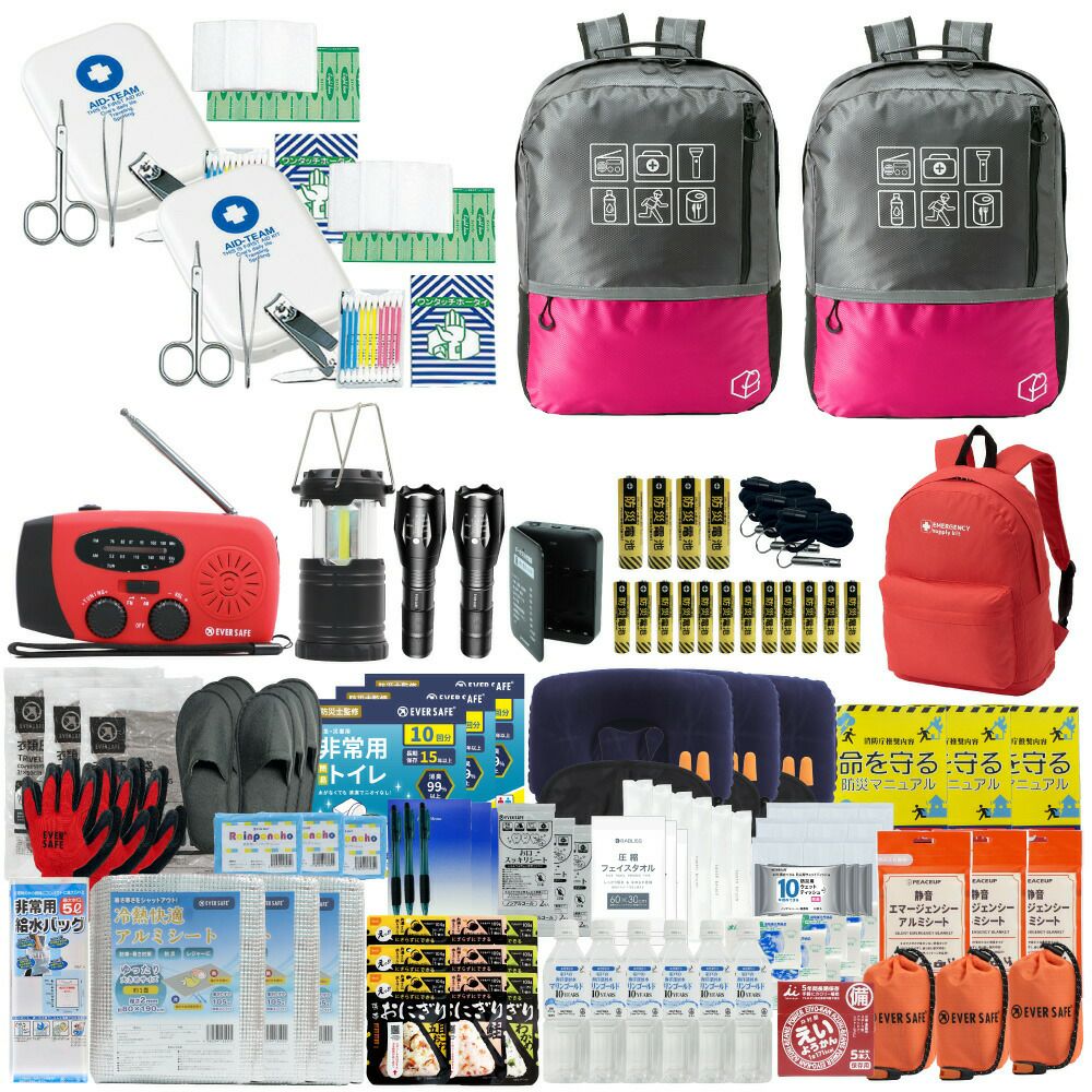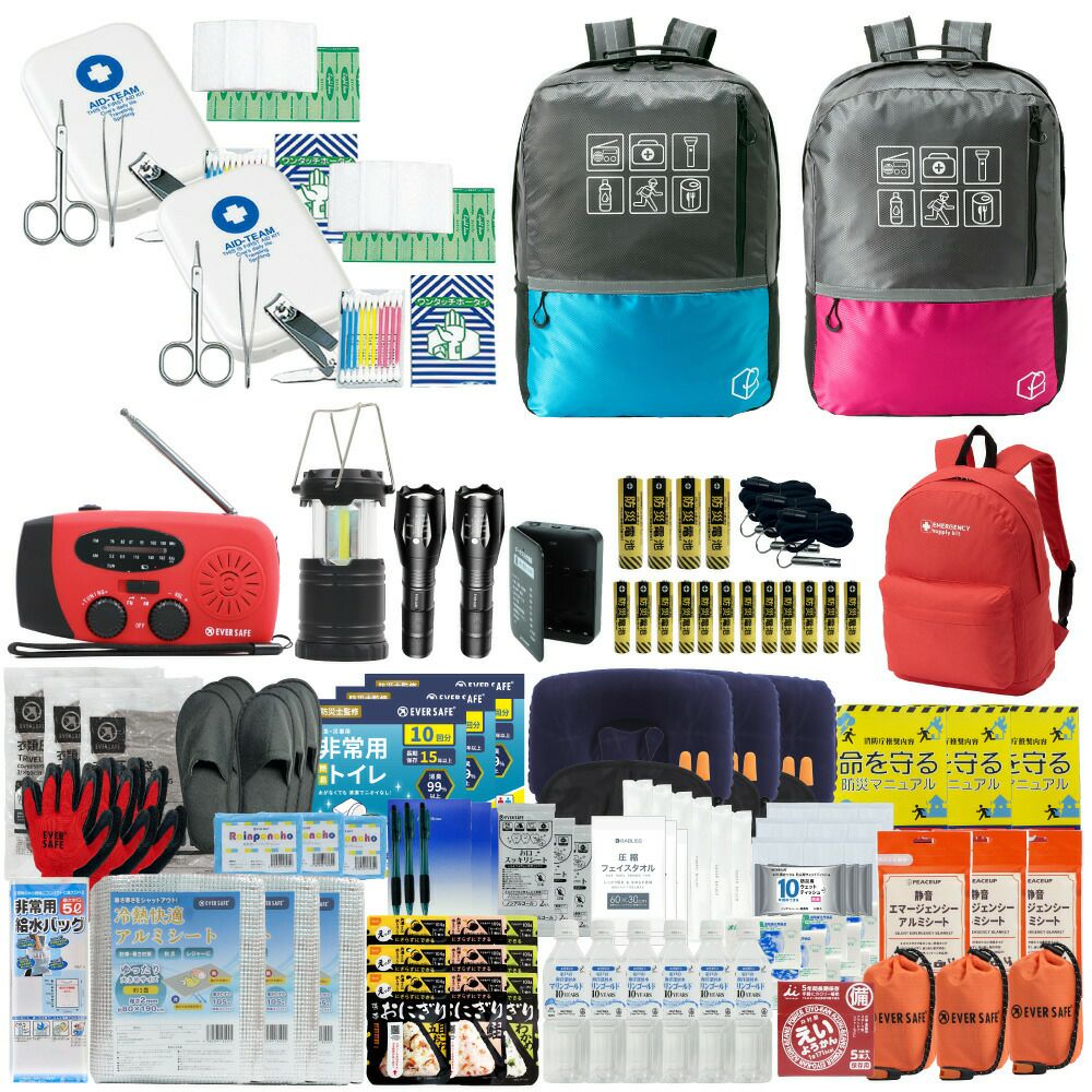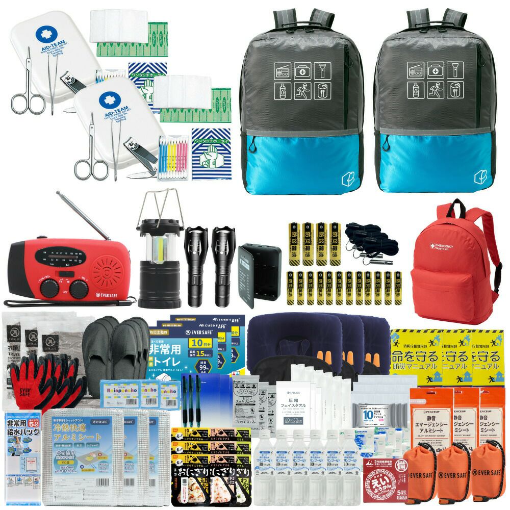 防災グッズ 防災セット 2人用 寝袋付き EVERSAFEリュック 防災士監修 救急セット 避難 地震 災害 防災食 防災寝具 防災ラジオ 長期保存水 非常用トイレ 懐中電灯 充電器 衛生用品 警戒レベル4 L4ESNB02