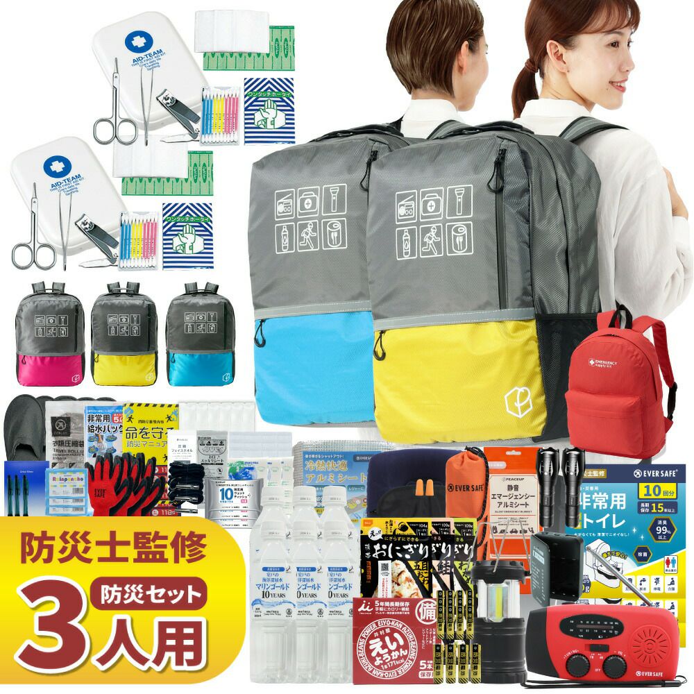 防災士監修 防災セット 3人用 47L ビッグリュック エマージェンシーリュック 非常用持ちだし袋 防災リュック 救急セット ラジオ 懐中電灯 非常食 保存水 携帯トイレ 警戒レベル4 非常時 L4BR03