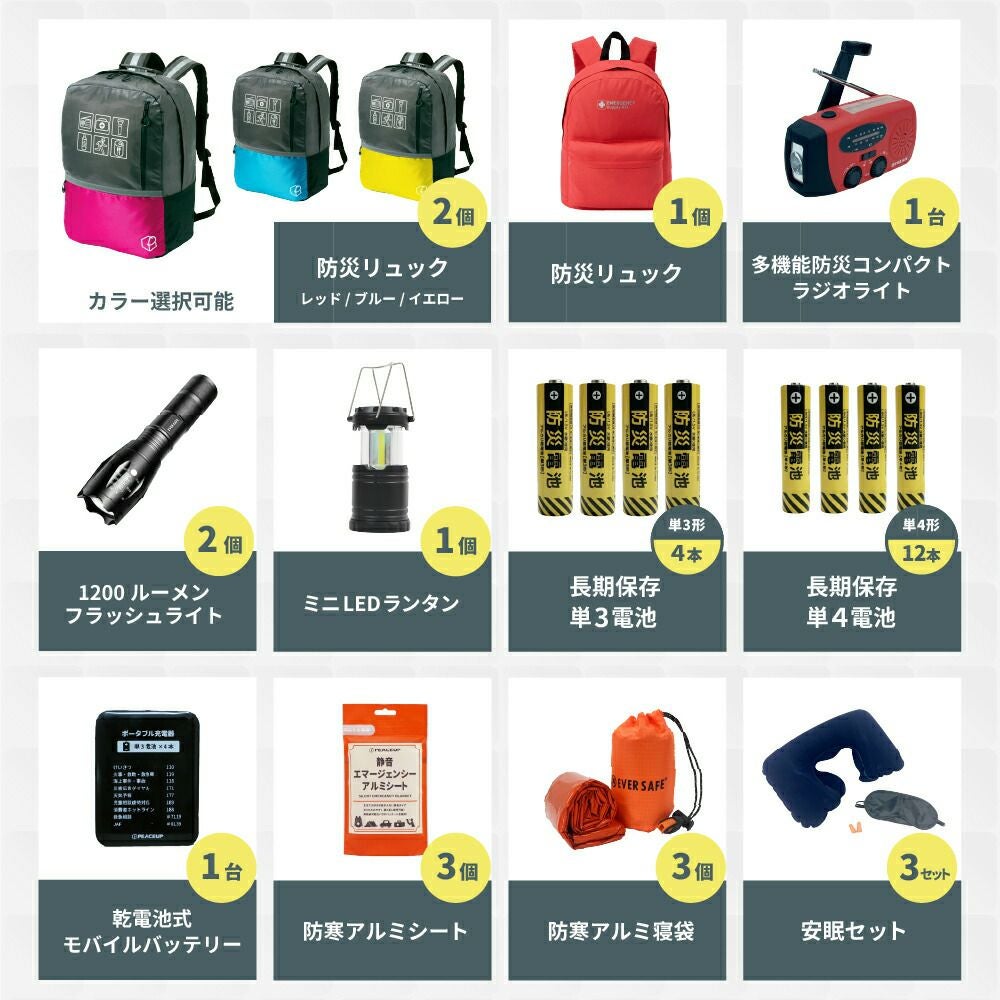 軽量なのに大容量 機能性抜群の撥水加工済み防災リュック ファーストエイドキットもついた充実の防災セット 寝袋・マット付き 選べる4カラー