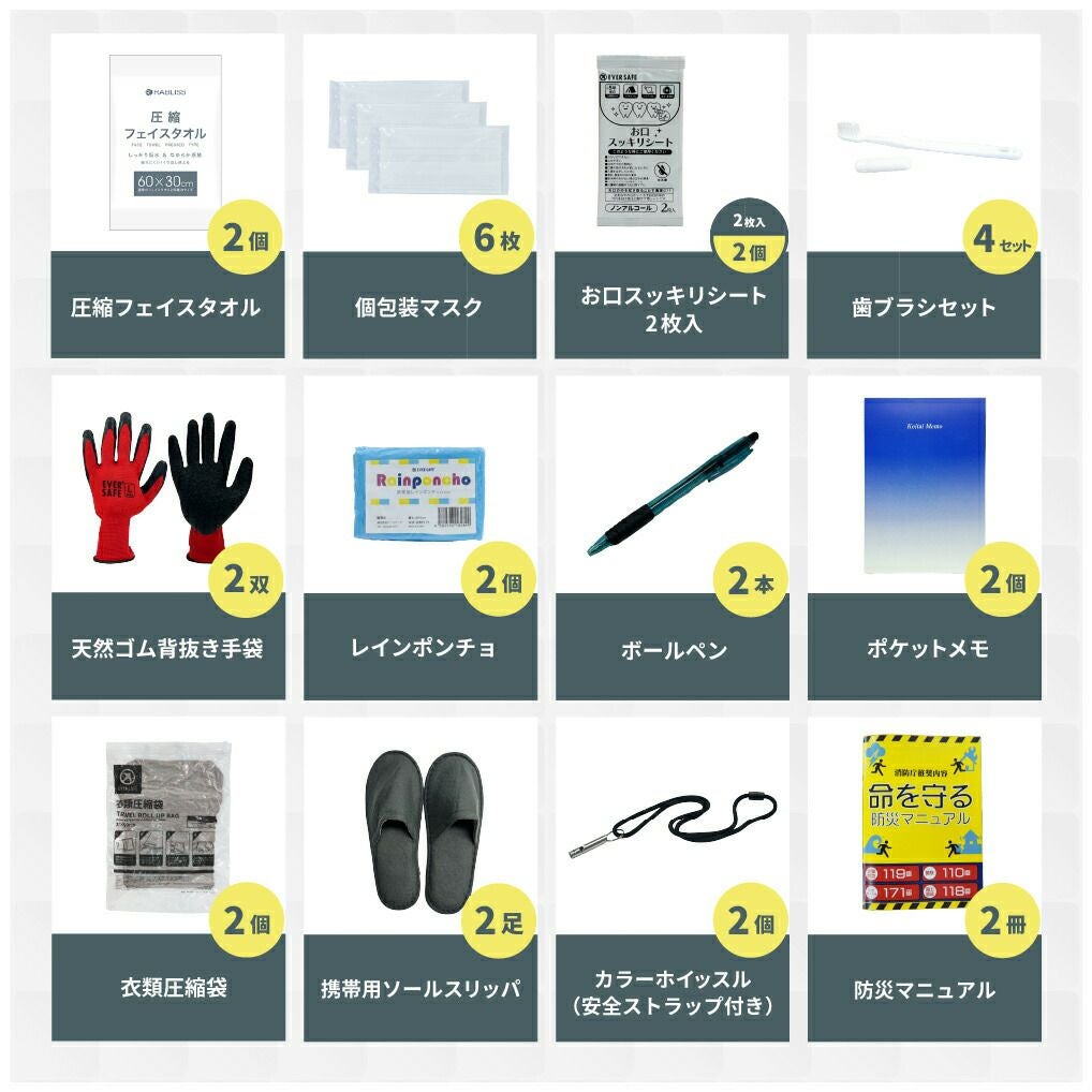 防災士監修 防災セット 2人用 EVERSAFEリュック 寝袋 ハット型ヘルメット 防災リュック 撥水加工 非常食 保存水 防災ラジオ 簡易トイレ 救急セット 懐中電灯 衛生用品 警戒レベル4 超軽量 アウトドア L4ESHTNB02
