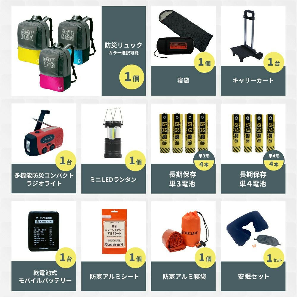 軽量なのに大容量 機能性抜群の撥水加工済み防災リュック 選べる4カラー 寝袋付きで充実の防災セット