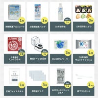 ソフティモ2泊おとまりセット×1 / 5年保存防災用ウェットタオル×1 / 折りたたみヘアブラシ×1 / 折りたたみミラー×1 / ヘアゴム×1 / センターイン 特に多い昼用 8枚入×1 / ソフィ ふわごこち 38枚入×1