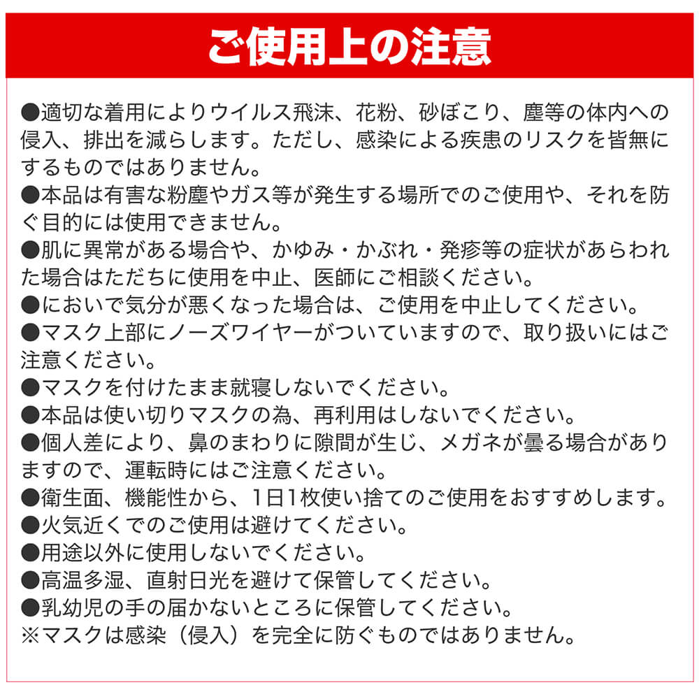 ※マスクは感染(ウイルスの侵入)を完全に防ぐものではありません。