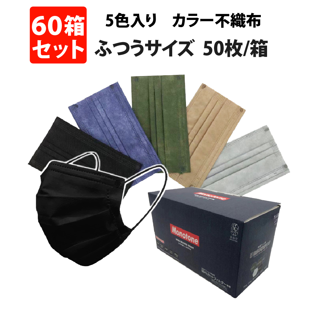 不織布 Monotone マスク 5色 50枚入り 60箱セット
