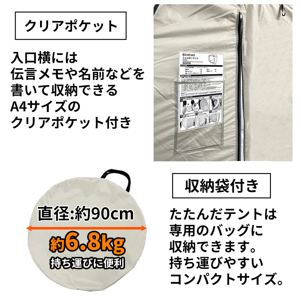 【関連ワード】 テント ファミリーテント 万能シェルター 間仕切り 更衣室 防災トイレテント ワンタッチ 折りたたみ ポップアップ 隔離スペース 室内 避難所 緊急時 災害時 パーテーション 目隠し 3人用 4人用 家族 デイキャンプ 組み立て 簡単 設営簡単 バーベキュー イベント 収納バッグ付 シェルター型 おしゃれ