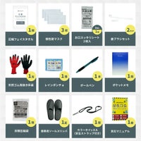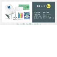 ケース×1 / ハサミ×1 / つめきり×1 / ピンセット×1 / ワンタッチ包帯×1 / 綿棒×10 / コットン×3 / 絆創膏×5