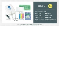 ケース×1 / ハサミ×1 / つめきり×1 / ピンセット×1 / ワンタッチ包帯×1 / 綿棒×10 / コットン×3 / 絆創膏×5