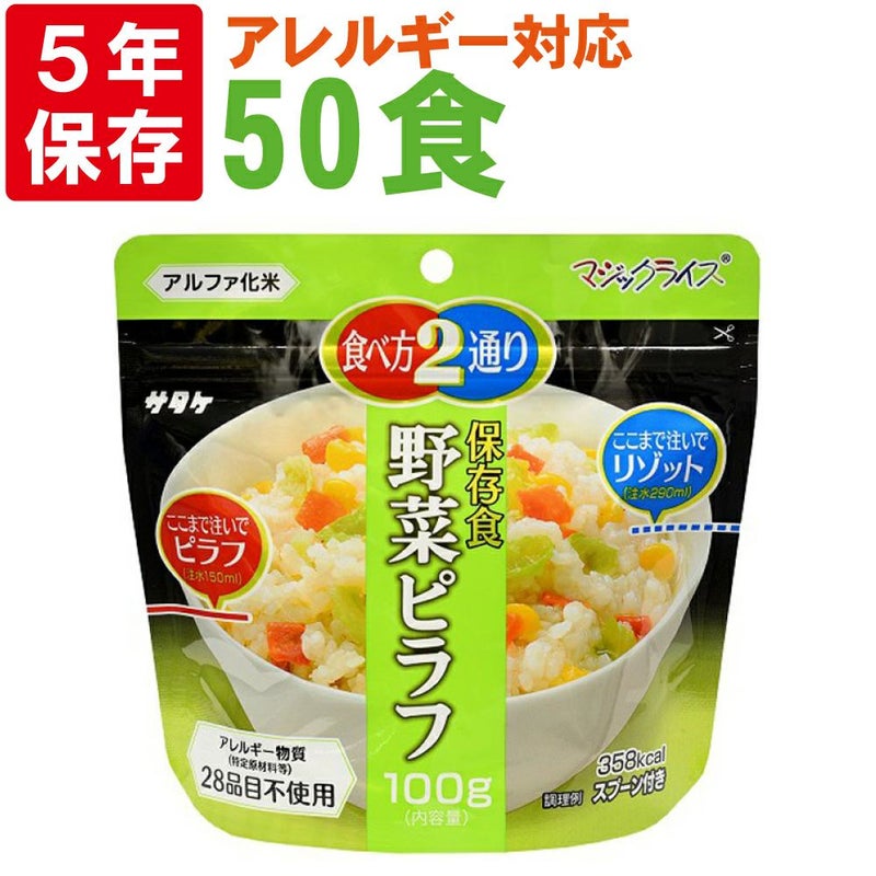 6. 防災食 非常食 サタケ アルファ米 マジックライス野菜ピラフ 50食 5年保存 アレルギー対応[5年保存]