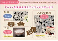アルファ米の『アルファ』とは、お米に含まれる「デンプンの状態」を示しています。お米は70?80%がデンプンでできています。生デンプン(生米)は、そのまま食べてもまずく、消化しにくいため栄養になりにくいのですが、水を含ませ熱を加えると、美味しくて、しかも消化しやすいデンプンに変わります。アルファ化したご飯は水分を除く(乾燥)と、生デンプンへ戻らず「アルファ化デンプン」の状態を保ち続けます。そして、このアルファ米にお湯や水を加えると、煮炊きせずとも、軟らかく美味しいご飯ができ上る、という訳です。