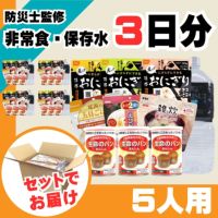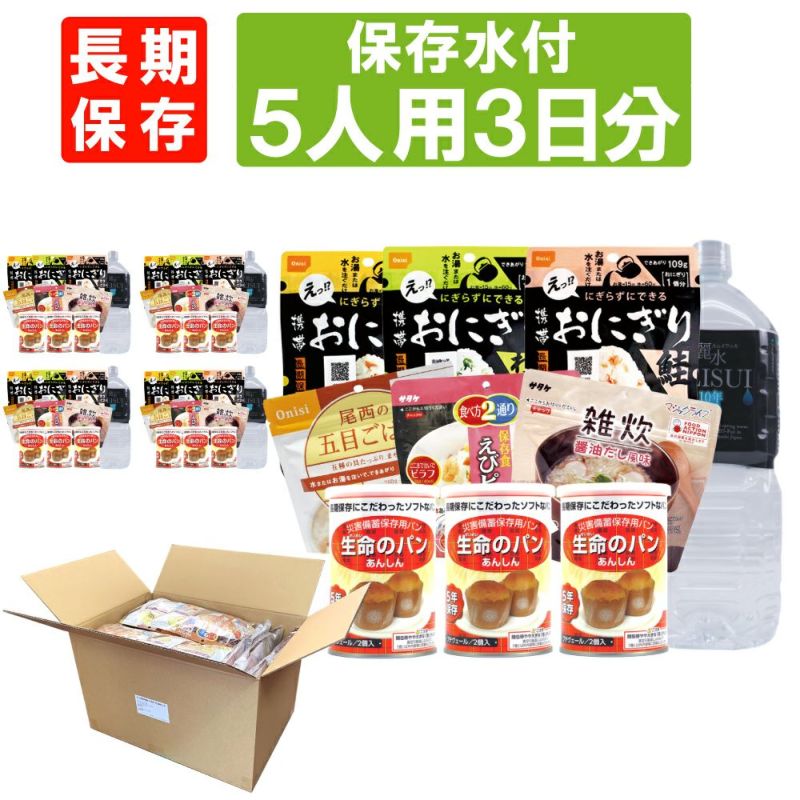 家族5人分の非常食3日間分と保存水!箱入りで団体様用備蓄にも便利。防災専門店の長期保存食セット 5人用/3日分(45食)【10年保存水付】