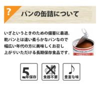 普段食べているようなやわらかいパンをそのまま缶詰にしました。カンパンより食べやすく、ふんわりとした食感が特徴です。パンの缶詰はいつでも柔らかく、しっとりとした味わいです。喉が渇かないように甘みを抑えてあり、脱酵素剤や防腐剤なども使っていません。