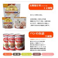 災害にあった際の非常食として長期保存や備蓄ができるご飯や食料食品のセットです。地震対策やサバイバル用としておすすめします。