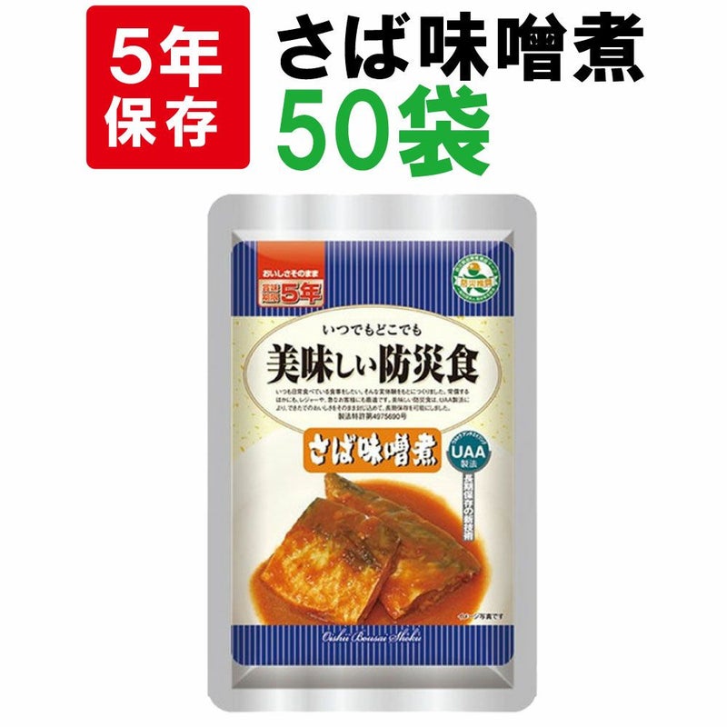 さばの味噌煮 5年保存食 50袋/箱 美味しい防災食 非常食 UAA食品 そのまま食べられる長期保存食