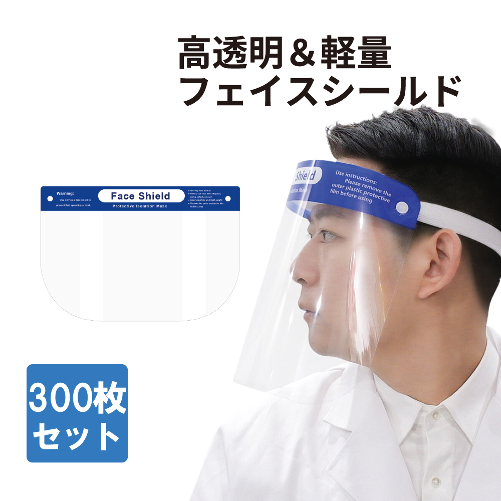 【300枚セット】高透過 超軽量 曇り止め 飛沫感染防止 フェイスシールド 300枚セット 飛沫防止 軽量 洗える メガネ併用可能