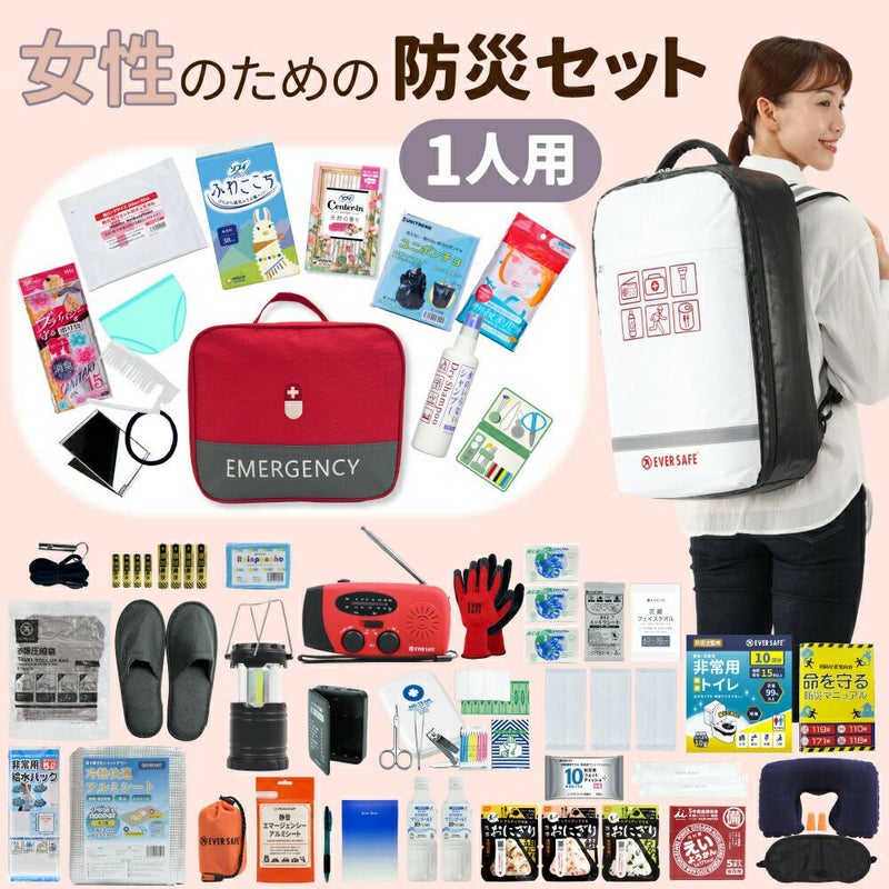 ソフティモ2泊おとまりセット×1 / 5年保存防災用ウェットタオル×1 / 折りたたみヘアブラシ×1 / 折りたたみミラー×1 / ヘアゴム×1 / センターイン 特に多い昼用 8枚入×1 / ソフィ ふわごこち 38枚入×1